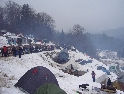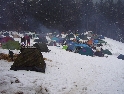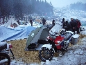 | Jak začít ??? …................ Třeba tím, že je zima a „prej“ se v zimě na motorce nejezdí :-) Tohle „prej“ ale dokáže vyvrátit nápad jet se podívat na šestapadesátej ročník mezinárodního srazu nemalých rozměrů, jako je Elefantentreffen. V roce 2009 jsem už tu čest pokochat se touto elefantí atmosférou měl, ale i přesto mi to letos nedalo, abych nevyrazil. Na Elefant jezdí spousta lidí z různých koutů Evropy, Ruska apod. Někdo si tam jede dokázat jakej je motorkář, když tam dojel a přespal, někdo tímhle srazem vyloženě žije, někdo tam jede jen tak z recese nebo se otužovat a při tom „vykrkat“ dvě bedny ledovýho píva. Já tam jel čuchnout zase k tý srazařský atmosféře, pokochat se těma jejich různorodejma samodoma sestavěnejma prastroječkama, na kterejch tam jezdí a celkově sebrat nějakej ten zážitek do vlastního trezůrku. Kolik lidí se mnou chtělo jet komentovat nebudu, znáte to. Se stupňujícím se počtem piv by jel každej a hned, ale jak přijde den „D“, tak jedete sami :-) No neva, já když se rozhodnu, tak prostě jedu, i kdyby padali hovínka s háčkama. Problém ale nastal ve středu před odjezdem, kdy se o mě pokoušel nějakej moribundus a začal jsem krchlat a začlo mi téct ze sosáku. Byla i chvíle, kdy jsem říkal, že nepojedu, načež mě moje pani podpořila slovy „prosim tě jeď nebo budeš zase nasranej, žes nejel“ :-) Pobalil jsem věci, sáhnul do lednice pro klobásu a paštiku, pani mi uvařila svařák do petky, synátorovi jsem sebral pár čajů na nachlazení do termosky, kopl do varanní vrtule a mazal.   Cesta proběhla v klídku po rozsolených silnicích s jednou zastávkou ve Volarech na čerpačce. Tam jsem dal kávu a cígo, samozřejme že venku, abych se nenamlsal tepla. Po příjezdu na Elefanty hnedle u vstupu potkávám dva známý zo Slovenska, co se tam jeli kouknout jen tak autem jako na vejlet. Po zaplacení vstupu se jdu nejdřív juknout za bránu, jak to tam je s náledím, bo v roce 09 jsem tam „vlítnul“ a hnedle kus za bránou jsem hodil krysu. Našel jsem si placík se slámou po někom z pátka hned kousek od vchodu. Převleču se, přezuju, popiju něco málo čaje a jdu na průzkum. Za jemnýho sněžení si projdu celej areál a je opravdu na co koukat. Tu je zvláštní stroječek, tu je cirkulárka hnaná zadním kolem od motorky, tu je o stan opřená nafukovací Andula, vedle je motorka s ruskou SPZtkou, zas jinde se skotskou a tu a tam kolem za pokřiku „alááárm“ jede nějakej ožrala nahej na enduru. Vedle mě se ubyvakovali Italové a hnedle po postavení stanu se jeden z nich svlíknul do naha, nechal si na prsa a na záda napsat něco italskýho fixem, nasadil si tanga, který byly upředu vybavený slonní hlavou s chobotem, ve který měl nádobíčko, sedl na Urala se sajdou a kulometem a jezdil po celým srazu sem tam za velkýho údivu včech účastníků srazu. Věřím, že chlapi obdivovali Urala a kulomet a ženskejm muselo vrtat v hlavě, copak ten tangovej sloník na tom Italovi má asi v chobotu :-) Potkal jsem tam i bavorácký GTéčko se sněžnejma řetízkama a reklamou na jejich výrobu a další a další kuriozity, co se týče zimních úprav motocyklů. V podvečer jsem něco slupnul, ohřál do termosky předem připravenej svařáček a rozbalil přístřešek. Přístřeškem opravdu myslím přístřešek od Colemana, kterýmu jde v nouzi zvednout přebytečná podlaha a jde se do něho zapnout. Při stavění ale pozoruju Italy, jak do sebe drbaj a nenápadně mě koumají tak dlouho, až jim to nedá se jít zeptat, kde mám druhou půlku stanu. Posmáli jsme a už mě rvali na Grappu a pívo. Odmítl jsem a šel se projít nočním šrumem. Po cestě občas pokecám s nějakýma Čechama a nakonec tam najdu i bratra kolegy z práce, co je tam s partou na jawkách. Sednu na chvíli k nim k ohni, poklábosíme, kde kdo byl, a jdu zase do nočního šrumu. Největší komedii mám z toho, jak ty nalitý lidi chodí po náledí a každou chvíli slyším, jak sebou někdo jebne na zem. Sednu si na sníh a chvíli tyhle padající lidi pozoruju, což je neobyčejná prdel. Po vypití druhý várky svařáku se před půlnocí ukládám do spacáku za neustálýho řevu, pokřiků a smradu z ohňů srazařů. Kterýho jinýho troubu může napadnout si udělat bivak na kopci nad údolím plným ohňů, co se asi dělo??? Dělo se to, že všechen ten kouř z těch stovek ohňů šel po tom kopci nahoru, takže jsem vlastně celou noc spal v kotelně. Spal jsem až do sedmi do rána a ani se nebudil. Je ale pravda, že jsem asi ještě do osmi ležel a nechtělo se mi ven, bo foukal ledovej vítr. Pobalím věci, vařím z ledový tříště, co byla večer voda v petce, kapučínko a ke kapučínku se snažím ukousnout tatranku. Tatranka byla trochu zmrzlá a tak jsem další chod jménem paštika nepokoušel, bo bych jí taky mohl lízat jako zmrzlinu :-) Chci dát ještě pár fotek, ale nejdřív musím prohřát foťák, páč se nechce ani otevřít zámrazou. Start Varouše proběh na jedna, dávám za jedna a stojím a stojím a stojím, ale kolo se točí. Holt na ledu Varan nejede, byť má drapáky jménem Karoo. Výhodou tohohle srazu je ochota dalších účastníků. Stačí, že vidí že vám to nejede a už jich máte za prdelí pět a tlačí. Cesta domů se ubírala ze začátku kousek po náledí, ale jinak na rozsolených až vymrzlých suchých silnicích. Probíhá opět káva ve Volarech, ale nyní cíleně, protože mi jaksi zamrzla helma - jak hledí, tak i panty, takže prohřátí helmy na pumpě přišlo vhod. Paní pumpařka mi sděluje, že má na teploměru – 12ct, což je víc než den před tím, to tam měla -5 a tenhle rozdíl se dá docela za jízdy i rozpoznat :-) Co bych dodal.........?? No každopádně jen to, že jsem o zážitek bohatší, neli