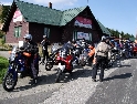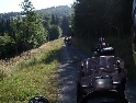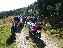 Předposlední zářijový víkend proběhlo tradiční, již páté, setkání u Slona. Sám za sebe mohu říct že to byla jedna z nejpovedenějších akcí. Ti kdo se zúčastnili vědí, ti co nebyli mohou jen litovat. Nebudu se moc rozepisovat, fotky mluví za vše :-). Počasí vyšlo přímo exkluzivně, celým víkendem nás provázelo jasno a slunečno. Pátek se nesl v duchu oslav Slonových kulatin, podpořených pěknou řádkou Tulamorky. Následovalo Slonovo poutavé vyprávění doplněné fantastickými fotkami z cesty po Tibetu na motocyklech Enfield. S přibývajícím časem a s ubývajícím alkoholem ve sklenicích a lahvích se rozproudila zábava i na "tanečním parketu". Ten, jak je zde již zvykem, převážně tvoří stoly :-). Atmosféru dokresluje to, že poslední účastníci této dance party odcházeli na kutě lehce před svítáním.... Ráno a vlastně celý následující den tomu pak odpovídaly. Začalo se velice zvolna a snídaně se protáhla téměř až do oběda :-). Ti kdo nevyrazili sami na solo vyjíždku za krásami Jeseníků, byli zachráněni společným odjezdem skupinky asi 25 motorek. Naše cesta vedla po vedlejších cestách, malebnou jesenickou přírodou na první zastávku. Tou byl, do té doby námi neprobádaný, Lesní bar kousek od Jeseníku. Úžasné místo se samoobslužným občerstvením, které určitě stojí za návštěvu. Odtud jsme vyrazili cestou necestou na Červenohorské sedlo, vyzkoušet přilnavost asfaltu v nově opraveném úseku a dát si na vrcholu něco k snědku. Po lehkém občerstvení jsme pokračovali směrem na základnu, přes Červenovodské sedlo se zastávkou na rozhledně Suchý vrch. Celkem to dalo příjemných 200km. Večerní zábava nebyla zdaleka tak bujará jako předchozí den a útulná hospůdka se začala velice brzo vylidňovat. Ale i tak se našlo pár skalních, kteří statečně drželi prapor až do ranních hodin :-). Nedělní rána jsou téměř všechna stejná. Zatímco někteří chvátají, aby byli brzo doma nebo cestou ještě navštivili některá zajímavá místa, jiní ještě vyspávají a snídani berou jako časný oběd :-). Co říci závěrem? Výborná akce s pohodovou přátelskou atmosférou a k tomu rekordních více jak 100 účastníků. Těším se na shledanou příště ;-). |
