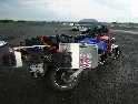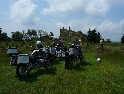 Ráno po snídani mám slovo s KTMartíkem na Chodově u kruháče, domlouváme se, že pojedeme po nejmenších vesničkách kamsi nad Plzeň a tam se kolem obědního sejdeme s Křenym. Nad Plzní proto, že mám v merku Doupovský vojenský prostor. Nasedáme s Martíkem do sedel a mažeme přes Berounsko a po těch nejmenších vesničkách nad Plzeň do městečka Manětín. Po cestě se jednou schováváme v zastávce před průtrží – vím srabárna, sice nemoky jsme měli, ale takovej slejvák na ně neplatí a hlavně než se do nich oblečeme, tak je po všem. Po příjezdu do Manětína tankujeme a ejhle kde se vzal tu se vzal Křeny na jeho oři BMW. Také doplní granule do nádrže a jelikož se blíží opět buřina a začíná lejt jak z konve, schováváme se v malé hospůdce u vynikajícího obídku. Přestalo pršet, nám se do žaludků už nic nevejde a tak nic na plat jedeme dál, že. Pomalu a jistě se vkrádáme zákazem vjezdu (který jsme neviděli) --- pssst --- do vojenského prostoru Doupov, resp. vojenského újezdu Hradiště a tak nenápadně si ho celý projíždíme křížem krážem po rozlehlých tankových pláních, okolo míst označených – zákaz vstupu místo dopadu střel a tak podobně. Doupov je jinak překrásný, co se týče krajiny, je to tam už takové nedotčené a zberchané z komunistických manévrů, dnes tam už totiž manévrují hlavně zajíci, srnky a sojky. Po projetí Doupova se vydáváme vedle Kadaně do povrchových dolů, kde jsem už ostatně před pár lety jezdil a byl se podívat až u těžebního stroje a tak na tohle jsem kluky nalákal. Jedeme stejnou cestičkou jako já před lety, kde stála budka s vrátným, který mě tam kdysi pustil, ale helemese bouda v riti a vrátnej taky. Jen rozvrtaná zem a cesta přerušena asi třímetrovou dírou, neva povídám, jedeme jinudy. Hledáme nějaký jiný vjezd do lomu, sice nacházíme, ale je s ostrahou. Naděje ale umírá poslední a tak jedeme kamsi do polí k lesíku po staré malé asfaltce, která končí u pšenice a tzv. polňačce. Jen se porozhlédneme a já vyrážím kupředu do pšenice po pevné vyjeté koleji na polní cestě. Ale asi tak po deseti metrech zjišťuji, že Varadero je jaksi né moc, ale úplně nestabilní, páč bahínko nebylo bahýnko, ale nějakej mazlavej lep, který nepobraly ani TKCéčka a tak chtíc nechtíc končím neřízeně v pšenici ale na dvou kolech. Jelikož se hnedle za mnou vydal Martík, měl ten samý problém, že měl z LC8my kajak a né motorku. Nejlíp to vyhrál Křeny, který se nikam nehrnul, zůstal na asfaltíku a měl zalitá očka slzami smíchu, prostě fracek jeden se nám smál.... Po tomhle pokusu jsme se snažili do těžebního prostoru „nabourat“ ještě jednou cestičkou, bohužel taky bez úspěchu, tak se přímo od Kadaně snažíme vjet přes bránu, která vede ke skládce, projíždíme a míříme si to dál k dolu. To ale nevíme, že po kilometru je tam umístěnej karavaník s ostrahou, která na nás koukala jako na zjevení. Hned jak jsem k nim přijel, povídám, jestli by se dal vidět důl z nějakého pěkného místa a ať se nezlobí, že jsme dojeli zákazem až sem, a jestli by nás tam na pár minut nepustili. I prd, regulerně jsme měli smolíka a mazali zpět a už jsme to nezkoušeli. Cestou od Kadaně se domlouváme, že přespíme v kempu u vodní nádrže Nechranice. A tak se i stalo. Po rozkoukání v kempu platíme nocleh, stavíme stany, počkáme až nám dva malí kluci ohodnotí motorky a jde se na kópačku. Chvíli se cahníme a co myslíte, že následovalo po koupání??? no pívo přeci. Pár jsme si jich dali, promíchli vínem a Martíkovo slivkou. Martík udělal dobře, že šel brzy spát a nedržel s náma „basu“ do pozdějších hodin, páč ho ráno alespoň nebolela hlava.