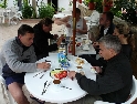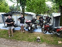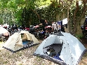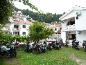 DEN 4: neděle 3.6. Swat: Ráno jsem měl oči, jak kdybych celou noc svařoval. Všechno bylo černý od sazí z lodního komína. Loď přistála v přístavu v 11 hodin a vylodění proběhlo kupodivu rychle a bez problémů. Motorky byly řádně přikurtovány, žádná nespadla. Igoumenitsa je takovej malinkatej přístav. Vyjeli jsme z přístavu a v mapě si našli camp asi 10 km od města na jih. Camp se jmenoval Elena a cena 10 euro komplet byla super. Camp byl víceméně karavanovej, plnej důchodců snad ze všech zemí. Našli jsme si pěknej flek kousek od místní restaurace a rozbalili stany. Byl slunečný den, což se nám hodilo a mohli jsme dosušit hadry a dospat se. Camp měl pěknou malou pláž. Šli jsme se vykoupat a uvařili jídlo a kávu a upadli do odpolední siesty. Klasická řecká večeře, mraky piv, debata kudy se zítra vydáme trvala do 23 hodiny. Většina lidí už spala. Zítra nás čekal náročný den. Máme v plánu přejet Albánii za 1 den.