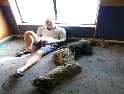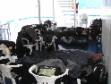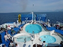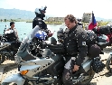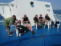 DEN 3: sobota 2.6. Swat: Druhá skupina spala v campu v karavanech a domluvili jsme se že se sjedeme v 11 hodin na dálnici do Benátek. Nasnídali jsme se, zabalili věci, některý stále mokrý a hurá na trajekt. Když jsme ráno odjížděli od hotelu, přišlo se na nás podívat pár lidí z ulice, co že to včera přijelo za blázny v tom největším lijáku…….. Setkali jsme se s druhou skupinou a vyrazili směr Benátky. Vyzvedli jsme si lodní lístky a hurá na loď. Nalodění proběhlo v pohodě, akorát mě nasral ten Řek co to tam organizoval, že prej máme dávat motorky víc k sobě a vůbec mu nevadilo že se potom nedostaneme do kufrů pro věci. Každej si vzal nejnutnější věci sebou na palubu a šli jsme se zabydlet……. Vyhmátli jsme flek u popelnic, kterej se nakonec ukázal jako velmi praktickej. Čekala nás celkem nudná 22 hodinová cesta do přístavu Igoumenitsa v Řecku. Na lodi bylo spousta motorkářů, dokonce 2 motogangy. Tedy s náma 3. Nějací němci, co dělali furt bordel a hned se ožrali a pak švýcarskej Broncos MC. Spali jsme na horní palubě kousek od lodního šroubu. Loď se třepala a byl tam hluk jak ve slévárně. Rozbalil jsem si nafukovačku pro 2 na kterou se mi přisral Bob. Vzal jsem ho na milost :-). Někteří z nás se opájeli alkoholem tak, že z popelnic vedle nás byla cítit metaxa hódně dlouho. Bigoune ty prase !!!