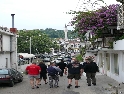 DEN 5: pondělí 4.6. Swat: Ráno balíme stany a dostáváme tip od majitele campu, jak se dostat nejkratší cestou do Albánie. Vyrážíme tedy směr Igoumenitsa-Sagiáda na Albánsko-Řecký hranice v horách. Až na celnici vedla asfaltka. Řecký asfalt strašně klouže. Jezdit na něm je fakt o hubu. Zastavíš a nohy se ti rozjíždí od motorky jak na ledu. Odbavení 12 motorek, kontrola techničáku a zelenejch karet+vystavení jakýhosi papíru, že motorka na které jedeš je tvoje trvalo asi hodinu. Vše bylo OK a před námi se zvedla závora a my vyrazili vpřed………. Cesta byla šotolinová v délce asi 20km. Jelo se jen na 1. a 2. převodovej stupeň. Průjezd vesnicí Ciflik, Butrint. Špatně jsme zabočili a vjeli jsme do vesnice ve které cesta končila. Otočit a zpět přes vesnici. Místní věděli že se to nedá projet, tak už na nás na náměstí čekali když jsme se vraceli zpět na křižovatku. Mávali jak o závod, moc motorek tam asi neprojede, natož 12 strojů v koloně s vlajkami :-). Zajímavé je, že ve vesnici byl jakýsi asfalt, ale vyjels ven a zase šotolina. Dorazili jsme k řece, kde byl přívoz. Každý zaplatil symbolicky 1 euro a vjelo se na prám. Pokračovali jsme směrem k městu Sarande. V horách kousek před městem už na nás čekal albánský policista na terénní Motoguzzi. Asi dostal echo od celníků a provedl nás skrz městem na majáky do hotelu, kde pracoval jeho známej. Byl to nově postavený přepychový hotel na kopci u moře s nádherným venkovním bazénem a palmami. Asi se Albánie vzpamatovává a snaží se nalákat turisty do přímořských oblastí. Dali jsme si oběd. Policista nás doprovodil na křižovatku za město, rozloučili jsme se a vydali směr Vlore-Fier-Lushnje-Durres, dále kolem Tirane do Lezhe a k jezernímu městu Shkoder, kde byl hraniční přechod do Černé Hory. Ale abych nepředbíhal……….. Cesta vedla překrásnými horami a koryty řek. Počasí nám stále nepřálo, střídal se déšť se sluncem, cesty byly rozbité a motorka šla hodněkrát až na doraz. Při jednom výjezdu ze zatáčky nebyl na silnici asfalt,byla tam jen kamenná cesta s dírami. Áda s tím nepočítal a zadní topcase givi vzlétnul a přistál na silnici. Odnesl to jen pár škrábanci, úchyty byly v cajku. Jelo se dál. Silnice do města byla v rekonstrukci, takže hurá do stupaček a vzhůru dolů. Následovalo pár hodin offroadu po rozbitých cestách. Nejhorší bylo že v blátě a kamení člověk musel předjíždět osobní a nákladní auta. Kousek před Tirane nás zastihl prudký liják. Rychle jsme odbočili na benzínku, dali si kávu a počkali až se bouře přežene. Pumpař říkal, že do Shkoderu je vybudovaná nová cesta a že by jsme se do půlnoci měli dostat na hranice…… V Albánii jezdí samej starej Mercedes. Museli snad vykoupit všechny starý šunky v bazarech v Německu… Na jedný cestě „stál“ uprostřed žebrák bez noh a mával na nás když jsme projížděli. Nechápu jak tam mohl stát, měl jsem strach že mi padne pod kola. Podél této cesty byly ve vesnici obchody s gumami, disky a poklicemi. Zajímavé bylo že co vesnice to jiný druh obchodu……… Přestalo pršet, tak vyrážíme směr Shkoder. Pumpař nekecal !!! Byla tu 4 proudová silnice. Valíme 130 a proti nám normálně jezdí v odstavným pruhu v protisměru skútry, na kruhovém objezdu se pasou ovce a normálně tu u silnice prodávají ovoce a zeleninu. Jinej kraj, jinej mrav. Autostráda končí a dál pokračuje velice slušná silnice, i když plná policistů s radarem, ale mávají a nezastavují nás, i když tam jedeme rychle jak hovada. Čas nás tlačí, začíná se stmívat. Tankujeme na benzínce za jednotnou cenu 20 euro za motorku a je úplně fuk kolik natankovals. Ber nebo neber. Pumpař si asi pěkně namázl kapsu a my vyrážíme směr Shkoder. Do města přijíždíme za tmy. Město je bez asfaltu, celý rozbitý, nesvítí tam pouliční osvětlení a kdo mohl bejt na ulici tam prostě byl. Všude mraky lidí, špína a smrad. Bloudíme, nemůžeme najít odbočku na hranice. Bigounovi se rozsvítila kontrolka oleje a motorka zhasla. Doprdele….jestli je to zadřený, tak tu všichni zdechneme. Zastavujeme motorky na kraji, působíme menší dopravní chaos, začínají se k nám přibližovat dav lidí. Jdeme zjistit co se stalo, vypadá to dobře, Bigoun dolil olej a motorka nastartovala. Slyším laďáky, můžeme vyrazit z tohohle bohem zapomenutého města. Albánský děcka mi okupují motorku a myslí si, že moje GPS garmin zumo je televize J. Přejíždíme most přes řeku plnej žebráků a vyrážíme směr hraniční přechod Murigan. Před půlnocí dorážíme na celnici. Kontrola všech dokladů a odevzdání zázračného papíru zabrala asi 30 minut. Z přijíždějícího auta vystupuje čáryfuk :-). Všechno je OK a my odjíždíme z celnice směr Ulcinj v Černé Hoře. Před městem nás zastavuje auto, prej jestli sháníme ubytování. Říkáme že chceme do campu, ten nám však rozmlouvá a nabízí ubytování u něho v pensionu za 9 euro na hlavu. Bez váhání bereme a jedeme za ním. Kdo by chtěl v noci stavět stan že….. Pokoje sou slušný, ubytováváme se a míříme do města na půlnoční večeři u jeho známého. Klasika, já na bráchu brácha na mě :-). Jíme co sneseme a o půl druhé ráno padám mrtvej do postele……………….