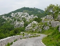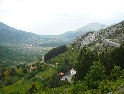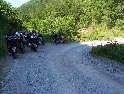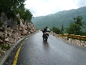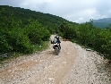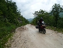 DEN 7: středa 6.6. Martin: Jen co déšť ustane a silnice trochu oschnou, vyrážíme na dnešní "etapu". Pobřežní magistrálu jsem si projel včera a ostatní z naší skupiny po ní zrovna netouží, takže to bereme vnitrozením. Stavíme u Skadarského jezera na pár fotek a pokračujeme dál na Podgoricu, za stálého Bigounova žadonění o zastávku na kafe J. Počasí nám přeje, polojasno a teplota až moc vysoko. Před Podgoricou odbočujeme na Nikšič a pak dál na sever, směrem k hranicím s Bosnou a Hercegovinou. Zkratkou to máme na hranice něco přes 50km. Odbočujeme podle mapy na vedlejší silnici kde po chvíli končí asfalt a až na hranice nás čeká šotolina. Docela pěkný ofroud :-). Těch 50 km hornatou krajinou jedeme skoro 2 hod, ale rozhodně nelitujeme. Na hranicích podstupujeme obvyklé procedury, než jsme vpuštěni na území Bosny a Hercegoviny. Pokračujem dál, směrem na Mostar údolím, které musí být za krásného počasí velice pěkné. Píšu schválně za "krásného počasí", protože celou cestu nám tu prší a normální déšť se střídá s průtrží takového rázu, že na silnici stojí vrstva vody. Jakmile déšť ustane, zastavujeme celí promoklí a promrzlí na "instantní svačinu". Dešťové mraky nám jsou v patách, takže do sebe rychle něco teplého nalejeme a jede se dál. Sjíždíme z hor do údolí k Mostaru. Je tu o poznání tepleji, ale nad městem se válí dešťové mraky. Vjíždíme do města, cesta k symbolu Mostaru - starému mostu je dobře značená a dokonce přestává i pršet. Jedeme stále podle ukazatelů a ve vjetí až na most nám zabraňují kluzké valouny, které tvoří povrch silnice. Prohlížíme si zrekonstruovaný most, který byl za nedávné války zničen a děláme pár fotek. Stopy války jsou ve městě stále na první pohled patrné. Novodobé dějiny připomínají i zbytky dělostřeleckého granátu umístěné na kameni s výmluvným nápisem"Don´t forget", který se nachází u vstupu na starý most. Z Mostaru se vydáváme krásný údolím podél řeky Neretvy na Sarajevo. Pro změnu opět za stálého deště :-(. U jezera Jablaničko se nám daří najít super ubytování za přijatelný peníz. Bereme to a dáváme info druhé skupině. Pro dnešek máme odježdíno. Jezero láká ke koupání, ovšem jen z dálky. Při bližším pohledu se v něm povalují neskutečné hromady PET lahví a jiného bordelu. A tak je to tu s většinou vodních toků. Holt jiný kraj, jiný mrav..... :-(.