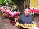 Martin: Ráno nás vítá protrhaná obloha a po okolních kopcích se povalující zbytky dešťových mraků. Tankujeme na benzince hned přes ulici a ve stejném složení jako včera se vydáváme na cestu. Jedeme směrem na Banja Luku. Projíždíme krásnou krajinou, podél řek, serpentinami přes hory, krása. Až na to že místní jsou neskutečný prasata. Na kdejakém plácku u silnice hromada odpadků, které sypou ze stráně rovnou do řeky. Nechápem. Počasí nám přeje a vypadá to že děšťový příděl jsme si už vybrali. Aby cesta nebyla tak jednotvárná, podstupuji souboj s jedničkovým golfem. Tváří se že zastavuje na kraji silnice, takže ho normálně objíždím, když v tom začne odbočovat doleva L. Brzda, klakson, naštěstí tam bylo místa dost... Zbytek cesty přes Bosnu a Hercegovinu už probíhá bez komplikací. Chceme přejet přes přechod v městečku Gradiška. Problém je v tom, že přechod je uprostřed města :-(. Silnice je zarvaná kamionama a autama, čehož využívají domácí pobíhající prodavači všeho možného. Kličkujeme mezi autama jak se dá. Celníci se zrovna hádají kdo dělá víc a na nás jen naštvaně mávnou ať jedem dál. Na Chorvatské straně je už vše bez problémů. Cesta Chorvatskem ubíhá rychle. Je jasno, teplota se šplhá stále výš, provoz minimální. Netrvá to dlouho a jsme v Maďarsku. Zastavujem na první benzince k odpolední siestě. Míříme k Balatonu, do lázeňského města Heviz. Cesta po rovných silnicích je jednotvárná a svádí k rychlé jízdě. Od toho nás ale odrazují policejní kontroly rychlosti. Klasika jak u nás. Radar schovaný v zaparkované Feldě a o kus dál to vybírají. Míjíme dešťové mraky slibující pěknou spršku a přijíždíme do Hevizu výjimečně suchý J. Je to upravené typické lázeňské město. Ptáme se na ubytování v místním kempu a po chvíli máme opět střechu nad hlavou. Díky přítomnosti termálních pramenů je kemp plný rakouských a německých důchodců, kterým výrazně kazíme věkový průměr :-). Jdeme na pivo a něco k snědku. Obsluhuje nás nádherná holčina z jejíchž úst zní maďarština tak sladce..... No ale zpátky na zem :-). Přijíždí druhá skupina a Bob se vydává na nákup něčeho k večeři. Kdyby s sebou neměl Jardu, který ho krotil, tak snad dotáhne celý krám i s prodavačkou :-)).