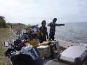 Jak jsme si říkali večer, že nebude pršet a každej z nás byl meteorolog a rosnička v jednom, tak pěknej prd. Ráno asi po páté hodině začalo tak lejt, že stany a všechno kolem balíme v lijáku a snažíme se ujet bez snídaně a jakékoliv hygieny. Takže si to v lijáku, nééé v dešti, ale v lijáku mašírujeme 140km přes Koszalin, Darlowo, Ustka , kde někde za Ustkou stavíme v zastřešené čekárně, už jen za účelem snídaně a domluvy na dalším pokračování. Bylo únavné, jak jsme dostávali megasprchy od protijedoucích aut. A to nemluvím o náklaďácích, páč „herr“ Polák má všude tak suprově vyjetý koleje, že při dešti to připomíná potoky. Posnídáme a přioblékáme svršky, což je docela prd platný, protože jsme promočený i přes nepromoky. Pouští se do nás chlad a klesající nálada do toho nedodává odvahy, že?? Nu nic povídám, že holt zkusíme jet dál a uvidíme, jak to půjde a při nejhorším, že vezmeme hned nějaký penzion za účelem sušárny. Pokračujeme zase v lijáčku přes Slupsk na pobřežní městečko Leba. Po cestě ale přestává cedit a déšť přechází v mrholení a pak přestane úplně. Bereme za Slupskem první větší pumpu, protože už potřebujeme něco na zahřátí do žaludku. Po hot kávičce a převlečení do sušších věcí je nám zase lépe a ještě je nám lépěji, když já s Křenym jsme už převlečení a David nás teprve baví, jak se souká z jednodílnýho nemoku, do kterýho mu brutálně teče zipem (pak si ho oblekl opačně a bylo po problému). Mezitím vedle nás zaparkoval autobus s Němci, kteří si taky dávali pauzu. Když všichni vylezli ven, tak kdo byl první na ráně byl převlékající se David. A jak tak Davídek chvátal, když si stahoval nemok, tak se stalo to, že mu jaksi před turisty vypadla z kalhot čabajka, nebo co to bylo za klobásu :-). Sice to hned zakamufloval, ale my s Křenym jsme málem zhebli smíchy a „Germáni“ se v tu ránu otáčeli. Po těchle manévrech začíná zase poprchávat, rychle sedáme na zmoklý motokola a jedeme do Leby, kde je národní park s dunami (Slowiňsky Park Narodowy). Celou cestu do Leby už nepršelo a tak oschlí dojíždíme za Lebu k vratům od nár. parku, kde zjišťujeme, že je to na dlouhou prohlídku a že pro nás tam nic moc zajímavýho nejní. Zadáváme si teda novej cíl a tím je poloostrov Helska, resp. konec poloostrova a tím je město Hel. Mezitím ale ještě v Lebě stavíme na molu a čučíme na rybáře po návratu z moře, jak vymotávají rybky ze sítí. Svlékáme nemoky a mažeme do stánku s čerstvými uzenými filetami z ryb, což bylo posléze takový pochutnání, že se mi dělaj sliny, i když to teď píšu. A ještě pro naštvání, fileta 30dkg stála po přepočtu 25,-Kč :-) Před městem Wladyslawowo zajíždíme ještě odzkoušet ty naše mastodonty do písku na pláže. Co myslíte, jak to v tom písku jede? Prozradím až později, nicméně při vjezdu na poloostrov Helska si připadáte jak na molu, vidíte v určitých částech moře 20m jak z levé strany, tak z pravé, místy oseté kempy a podobnými ubytovacími vehementy. V poslední části poloostrova jsou vojenská muzea i objekty nynější armády, která míjíme a necháváme je na ráno. Po příjezdu do města Hel projíždíme uličky a „mapujeme“ městečko a i víceméně hledáme ubytování, až se nám stane na „promenádě“, že tím samým místem projíždíme podruhé a hnedle z krámku vyběhne človíček a žene nás k sobě na dvůr, který patří k jeho penzionu. Po domluvě a sdělení lidový standartní ceny včetně garáže, kde si můžeme usušit všechny věci vč.stanů, bereme. Motorky zavezeme do garáže a co myslíte, že se stalo? Začalo takovým způsobem lejt, hromy, blesky, že jsme nechápali a byli vděčni, že nás vlastně ten děda nalákal k sobě na penzion. Večer sice unaveni, ale už prohřátí z hot sprchy se na doporučení vydáváme do rybí restaurace, kde si opět za standartní peníze pochutnáváme a když nám padají už po jídle a druhém pívu oční rolety, jdeme spát na penzion.