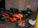 Den osmý, pátek 17.9.2004 Ty švédský stoly mne zničí. A 50ti% slevy v KTM taky :-). V Bánské Bystrici se stavujeme u KTM a zjišťuji, že je tam ona sleva :-) . Můj oranžový šatník se zase trošku rozšířil. Hajnej zase pořídil zrcátka na afriku za 700,- Kč :-). Dolévám trošku oleje a mazácky odjíždím po zadním. Při dopadu vidím gejzír oleje – já blbec nechal na motce měrku a nezavřel nádrž :-). Hajnej se vrací pro měrku a já jsem naolejovanej jako Stríťák když jde tančit na stodolní = od hlavy až k patě :-). Jedeme zatáčky kolem Harmance a je to paráda. I to počasí nám přeje. Za Žilinou sme jeli každý svým směrem. Hajnej nach Olomouc, já směr Jablůnkov. Tam už sem jen chvilku počkal na mou milou, na její náruč a smích, kterej vyléčí každej šrám.