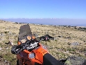 Den pátý, úterý 14.9.2004 Dneska ráno dorazila asistenčka s CDI. Ukazuje se, že je v tahu i regulátor dobíjení. Láďa volí cestu domů za podpory octavie z Čech. Asi to tak bude lepší. Low mezitím zajel opravit kolo a jsme připraveni vystartovat dál. Jedeme úvozem ke kláštěru kde je dnes svátek a vegetariánské jídlo grátis. Nic pro mne a asi pro nikoho z nás. Kolem prosvištíme a jedeme hledat cestu dolů. Michal jede na průzkum a po nějaké chvilce mu jdeme s Hajným pomoci, bo se zahrábl. Sotva jeho moto jen trošku zacítí adhezi jede vzhůru a vzhůru a vzhůru. Obdivuhodné. Ten kopec má přímo nekřesťanskej sklon. Poslední třetinu kopce – kde sme zůstali – vyjíždíme s Hajným taky, zato bawu se nějak nechce a po chvilce tůrování, které se ozývá z lesa se objevuje M. v sedle :-). Cestou dolů myjeme motky v brodu, rychle obědváme sušenky a jedem do syrnýho dolu. Tady je vyschlé jezero plné krystalů síry všech velikostí. Každej v tom jemným písku uděláme kolečko a Low je jedinej, kterej nemá strach o řetěz. Asi jedna výhoda bawa, že??? :-). Cestu nám pak protíná závora. Pánové z ochranky nechtějí na téma vjezdu moc diskutovat, ale pak nás pouštějí. 100.000,- Lei je asi jasná a zřetelná motivace :-). Nahoře jsme odměněni podledem na rozsáhlou náhorní plošinu a vrcholek je ve 2000 metrech nad mořem. Děláme pár turatešských fotek, koukáme a líbí se nám to. Domů jedeme po asfaltu neboť se už stmívá.
