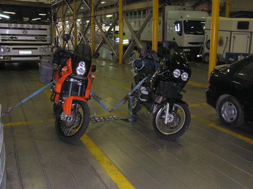 Den čtvrtý Baza – Algericas – Ceuta – Martil V Algericasu měníme gumy. Moc nám nechtěli pomoci ti syčáci z Hondy. Nakonec, ale slíbili, že to za 4 hodiny zvládnou. Stejně to bylo jenom kvuli tomu, že sem tam koupil drapáky. Viktor si je vezl z Prahy. Na špuntech sem ještě nikdy nejel a sem z toho dost vytočenej. Vůbec to nedrží a klouže to jako prase. Po 35 minutách na trajektu, kde potkáváme i maníka s FireBladem, jsem v Ceutě, která je ještě španělská. Ovšem ta celnice je dost hustá. Hned na začátku sem nalítl nějakýmu obchodníkovi s větrem, kterej nám prej pomůže zařídit formality. Stálo mě to jednoho euráče. Pak jsme, ale padli do rukou opravdovskejm marockejm celníkům. Všechno mělo bejt v pohodě neb víza sme měli už z Prahy. Jenže bystré oko celníkovo zjistilo, že v techničáku nejsem napsanej já, ale firma. A už to jelo. BIG problém. Nakonec sem, ale našel plnou moc od firmy, že mohu motku používat v Evropě i Africe. Dokonce to tam je napsáno v pěti jazycích. Té marocké sádelnické prasečí dementní hlavě to však nestačilo. Když už bylo na celnici dost dusno a vzteku tak přišel nadřízený tohodle prasete a všechno bylo OK. Výsledkem byly dva papíry, které si vezete celou cestu sebou a při výstupu ze země musíte zase jeden vrátit. WELCOME TO MAROCCO. Je už pozdě a tak usínáme pod širákem v kempu v Martilu.