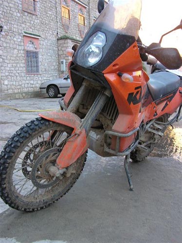 Cestou míváme někdy hoňky sehnat benzín. Ne všude mají SANS BLOMB. Sice prý KTM může jezdit i na olovnatý sračky, ale proč to zkoušet zrovna 6000km od domova.