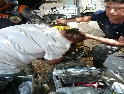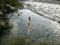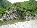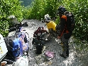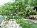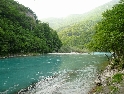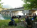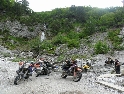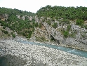 Cesta dál ubíhá v pohodě, jen jsme všichni už více opatrnější. Stále je na co koukat a tak co chvíli stavím a fotím. Povrch cesty je stále častěji tvořen většími kameny a jízda se stává čím dál tím náročnější a unavující. K tomu se přidává horko a slalom mezi náklaďáky a stroji záplatujícími cestu směsí hlíny a kamenů. Konečně vhodný plácek, stavíme na piknik u řeky a dáváme osvěžující koupel. Dostatečně posilněni a lehce odpočati vyrážíme dál. Řeka se postupně rozšiřuje, kopce klesají a kdesi před námi leží Shkoder. A v tom to přišlo, konečně asfalt :-). Stavíme v první občerstvovně, abysme to zapili. V duchu děkuji svému zubaři za kvalitně provedenou práci, neb mám stále plomby všechny :-). Ve Shkoderu natankujeme a probíjíme se městem ven. Za nedlouho již stavíme na mostě přes řeku v Komani odkud chceme zítra ráno vyrazit trajektem do Fierze. Hned za mostem je odbočka do kempu. Je rozhodnuto, tuto noc přespíme tady.