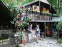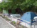 Kemp jsme si pojmenovali "Pod mostem", jelikož pan domácí využil mostu coby střechy, vystavěl pár zdí a hned je tu restaurace a bydlení :-). Rozkládáme ležení na zatravněných terasách a ládujeme se poklady z kufrů. Kemp má dokonce i sprchu se záchodem, takzvaně 2v1. Jedná se o místnost kde je turecký záchod, ze zdi je vyvedená sprcha, dále je tam rezavý bojler a ještě rezavější pračka a do toho na podlaze souvislá vrstva vody. Mno, nechtěl bych využít sprchy zrovna když se pere :-). Takový komfort ovšem není nic pro nás a raději se spokojíme s nádrží na vodu na zalévání uprostřed zahrady.