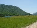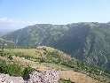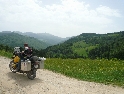 Jedem po hlavní stále na jih a za městem Shupenze odbočujeme na vedlejší šotolinovou cestu vedoucí podél makedonských hranic. Místy kamenitou šotolinu nám zpříjemňují louže velikosti pasti na mamuta :-). Cesta stoupá vzhůru a na vrcholcích kopců po levé ruce tuším makedonské hranice. Stavíme na odpočinek na malé louce, u informační tabule o místní krajině. Společnost nám dělá místní policista, který zřejmě na někoho čeká. Po chvíli z kopce sjíždí Defender a z něj vystupují dva ozbrojení pohraničníci ostře řezaných rysů a hned se ujímají kontroly našich dokladů. Následují běžné otázky typu co tam děláme, kudy jedeme a tak dál. Není se čemu divit, jejich základna je hned na druhé straně cesty :-). Policista se s pohraničníky pozdraví, překontroluje plný zásobník své pistole a mizí kdesi v lesích.