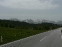 Počasí nevypadá že by se nějak výrazně zlepšilo a tak se na křižovatce radíme co dál. Původní plán byl jet na sever po šotolinových cestách. Po zkušenosti z výjezdu od chatky se nám do toho nechce a tak volíme "méně adrenalinovou" trasu po silnici. Za vytrvalého deště s nostalgií