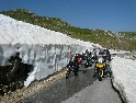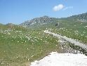 Ráno chce část výpravy vyrazit rovnou do Budvy a tam strávit zbytek dovolené. Naštěstí se daří vzpouru zažehnat a pokračujeme dál podle itineráře . Po úzkých kvalitních silničkách se proplétáme mezi zasněženými horskými štíty Durmitoru, sluníčko svítí, nikde nikdo, co víc si přát? Být to v Alpách, je tu hlava na hlavě a u vjezdu se platí mýtné :-). Zastavujeme u svahu pokrytého zbytky sněhu a dovádíme jak malí kluci :-).