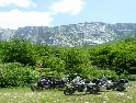 Po kontrole dokladů nám policisté zvedají závoru, popřejí šťastnou cestu a v poklidu se vrací ke své původní činnosti, ze které jsme je vyrušili - hraní kostek :-). Šotolinová cesta končí kousek před městem Plevlja, kde natankujeme a již po asfaltu míříme do Žabljaku. Cestou přejíždíme známý vysoký most přes řeku Tara. V Žablajku chvíli trvá než najdu správnou odbočku a opět, podle navigace, se vydáváme do národního parku Durmitor. Klikatá cesta vede nádhernými horskými sceneriemi a v jednu chvíli vystoupáme do výšky přes 1900 m.n.m. Poté šotolinovými serpentinami prudce klesáme na dno nádherného kaňonu Sušica. Máme štěstí, jezírko, které v létě běžně vysychá je plné vody a láká ke koupání. Toho také pár odvážlivců využívá, ale jen na chvíli - voda je ostrá jako břitva :-). Po malém pikniku se vydáváme opět serpentinami na druhou stranu kaňonu. Vyhoupneme se na náhorní planinu a za chvíli stojíme před hospůdkou ve vesničce Trsa. Někteří členové výpravy jsou magicky přitahováni prosklenými lednicemi plnými piva a tak možnost dnešního pokračování v cestě bere za své :-). Ptáme se na možnost postavení stanů - odpovědí nám jsou malé chatičky za 5 Eur/os. OK, stany dnes zůstanou nevybalené, o to více se můžeme soustředit na vynikající večeři od paní domácí a likvidaci zásob piva. Večer u stolu s námi tráví syn majitelů a lámanou angličtinočeštinou se bavíme o všem možném. Se zaujetím všichni posloucháme historky o městu Budva, ležícím na pobřeží, kam se prý sjíždějí paničky z celé Černé Hory, v touze po milostných dobrodružstvích :-)