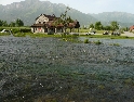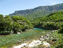 Za občasných přeháněk jedeme po hlavní silnici dále na jih. Projíždíme Pogradec, Korce a cesta rychle ubíhá. Na hlavní silnici jsou i časté policejní kontroly s radarem. I když občas nejdeme zrovna podle předpisů, policisté jsou tolerantní a jen pokynou ať zpomalíme. Makedonské hranice po levé straně vystřídaly řecké a čím víc na jih, tím víc si všímám rozdílné mentality obyvatel. Projížděná městečka mi přijdou více upravená a uklizená, než na severu Albánie. Erseke, Leskovik, Carshove a jsme na křižovatce. Vlevo je to do Řecka, my však odbočujeme vpravo, cílem dnešní cesty jsou horké prameny kousek před Permet. Ty se nám daří najít za pomoci místních mladíků kteří nám ukážou cestu - výměnou za svezení :-). Dojedeme až ke starému římskému mostu, pod nímž je uměle vytvořený bazének s vyvěrající horkou vodou. Bazének a jeho blízké okolí nám dává připomenout kdeže to jsme. A tak nikoho nepřekvapí hromada odpadků kolem a dokonce i na dně bazénku. Jelikož je sobota a i přes občasné přeháňky hezky, je zde spousta místňáků. Velké návštěvnosti tohoto místa využil starší manželský pár, který si zde zbudoval chatku s rychlým občerstvením. Opět se nám nechce stavět stany a používáme již osvědčenou fintu. A tak, když všichni odjedou, rozbíjíme ležení na place pro stoly. Za odměnu pomáháme večer panu domácímu do chatky stěhovat dovezený kompresor a ledničku.