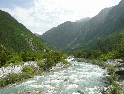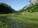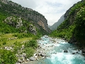Pohoří Durmitoru necháváme za zády a míříme dál na jih. Dalším cílem je údolí soutěsky Komarnica, kterým protéká stejnojmenná řeka. Cesta se stále zužuje, a končí na plácku akorát vhodném pro táboření. Dále nahoru podél řeky vede už jen jakási pěšina. Chvíle odpočinku využívá David a statečně se s GSem vrhá do vln řeky Komarnica :-). Výjezd na druhý břeh je však prudší než předpokládal a tak bezmocně zůstane stát uprostřed koryta. Ještě než se pro něj s Ríšou vydáme, vybaví se mi Beatles a jejich Žlutá ponorka :-)). Po vytažení, odbahnění, vysušení se vydáváme dál, blíže k albánským hranicím. V pozdní odpoledne projíždíme kolem Plavského jezera, doplňujeme zásoby a v městečku Gusinje hledáme cíl naší dnešní cesty - Alipašiny izvory - prameny řeky. Kousek dál proti proudu řeky Skákavice je vývěr řeky z podzemí - Oko Skákavice a také nádherná louka vhodná na přenocování.