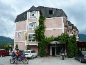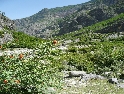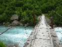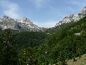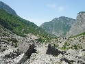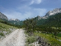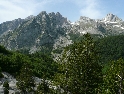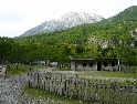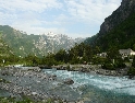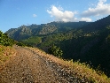 Není čas ztrácet čas, den ještě neskončil. Vyrážíme směrem na Theth, snad nejznámějším a nejnavštěvovanějším údolím. Silnice je notnou řádku kilometrů nově vyasfaltovaná, než začne zas ta pravá šotolina. Cesta se klikatí, pomalu stoupá a místy překvapí úseky s vyjetými kolejemi v čerstvě vysypaném štěrku. Nedá se jet rychle, už jen kvuli tomu, že se nestačíte rozhlížet kolem sebe :-). Ještě překonat pár ostrých vraceček a jsme v sedle. Najednou se nám otevírají nádherné výhledy do údolí národního parku Theth. Teď už vede cesta jenom z kopce. Ještě malá zastávka u vodopádu a jsme ve vesničce Theth. Zastavujeme u informační tabule a domlouváme se jak dál. Máme v plánu ještě kousek popojet a najít nějaké místo na táboření, když v tom přijíždí na kole malý Francesco (známá to postava z mnoha cestopisů :-) ) a nabízí ubytování u nich v domě i s jídlem.