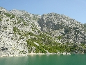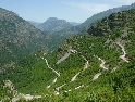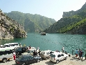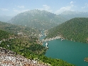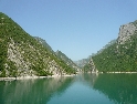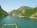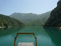 Dnes vstáváme na čas, rychlá snídaně, sbalit a jedeme na trajekt, který vyplouvá v 10hod. Projedeme placeným tunelem a jsme na malém parkovišti místního přístaviště. Spolu s námi je tu pár autobusů, aut, nějaký ten náklaďák a partička německých motorkářů. Naloďujeme se mezi prvními a bereme místo na horní palubě. Čekáme než se na trajekt naskládá celý obsah parkoviště a vyrážíme. Po právu bývá tato přehrada přirovnávána k norským fjordům, za každou zátočinou se nám otevírá nová úžasná scenerie. Slunce však neúprosně pálí a tak se raději odklidíme do stínu. Neskutečné hromady odpadků plující po hladině jsou neklamným znamení že za chvíli bude přístav. I když, pokud bych to měl brát podle odpadků, tak přístav by byl hned za první zátokou :-). Po prašné cestě, v koloně aut, opouštíme přístaviště a v městečku dáváme lehké občerstvení. Po hlavní, ukrutně zatáčkovité silnici vyrážíme na jih. Serpentiny nás dovedou až pod vrcholy pohoří odkud je krásný výhled na soustavu přehrad. Zatáčky neustávají ani na dalších kilometrech směrem na Kukes. Až se z toho motá hlava.