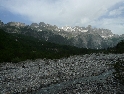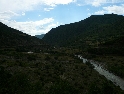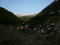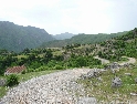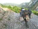 Z Kukes to bereme opět na jih, máme v úmyslu projet cestou vedoucí údolím Drini te Zi. Stejně tak i další výprava z CZ (LR Discovery, DR 350, GS650) se kterou jsme se potkali při tankování na benzince. Nejen soudruzi z NDR chybují. Ve spleti špatně značených cest jsme někde špatně odbočili. Jedeme sice směrem co jsme chtěli, ovšem nikoliv údolím ale po úbočí hor. Vracet se nebudeme, jedeme dál. Svět se mění, vše se neustále vylepšuje, přibližuje, zrychluje a nejinak je tomu i tady. Šotolinová cesta po které jedeme je jedno velké staveniště. Kompletně se předělává na asfaltovou, ovšem tím stylem že na všech místech najednou. Takže kličkujeme mezi stavebními stroji, mezi náklaďáky, pod naloženými lžicemi bagrů, místy po novém asfaltu, častěji však ve vrstvě jemného prachu a kamení. Cesta je špatně, nebo spíš vůbec značená a tak se držíme vyjetějších kolejí a křižovatky projíždíme stylem pokus / omyl a následně se opět vracíme. V jedná vsi opět špatně odbočíme na jakousi cestu, která po chvíli končí kolmou stěnou někam hluboko dolů. Sesutý svah. Stmívá se a podobná překvapení nejsme ochotni riskovat. Táboříme tedy na kamenitém plácku u řeky, kousek od vsi. Náš oheň přilákal i partu místních kluků, máme tedy na večer společnost. Komunikace probíhá pomocí pár anglických slovíček a albánsko českého slovníku. Kluci se chlubí moderními mobily a "MPnevím kolik" přehrávači se spoustou aktuálních hitů, které nám však nic neříkají. Povidám, co takhle Metalica, Nirvana, AC DC, máš??? S výrazem nepřipraveného žáka u tabule kroutí hlavou. Nezná. Divnej svět... :-)