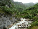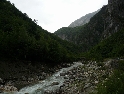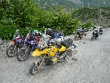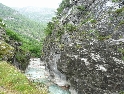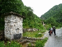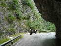 Ráno moudřejší večera. Ale kdepak dnes. Opět je zataženo a deštivo. V městě Peč, odbočujeme doleva do Rugovské soutěsky. Cesta vede kolem vojenské základny (Italské?) s rozstřílenou strážní budkou a cestou vysekanou ve skále stoupá stále nahoru. Požitek nám však kazí neustávající déšť. Končí asfalt a dál pokračuje šotolina, která se zužuje, přejedeme pár štěrkových sesuvů a jsme na konci :-(. Cesta dál je zatarasená betonovými bloky a hlubokým kráterem. Tudy cesta do Černé Hory nevede. Což o to, projet by se to na motorce dalo, problém by ovšem byl s razítkem v pasu.