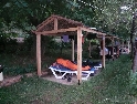 pod přístřešky a chystáme spaní. Ještě před tím však řešíme Ríšovo zadní kolo. V lehce podroušeném stavu se ujímám montpák, protože jsem to už kdysi na nějakém videu viděl a to je skoro jako bych to uměl :-). Montáž knotů není možná a tak zkoušíme řízlou gumu zevnitř zalepit záplatou, ovšem bez úspěchu. Přichází tak na řadu duše, která problém řeší definitivně.